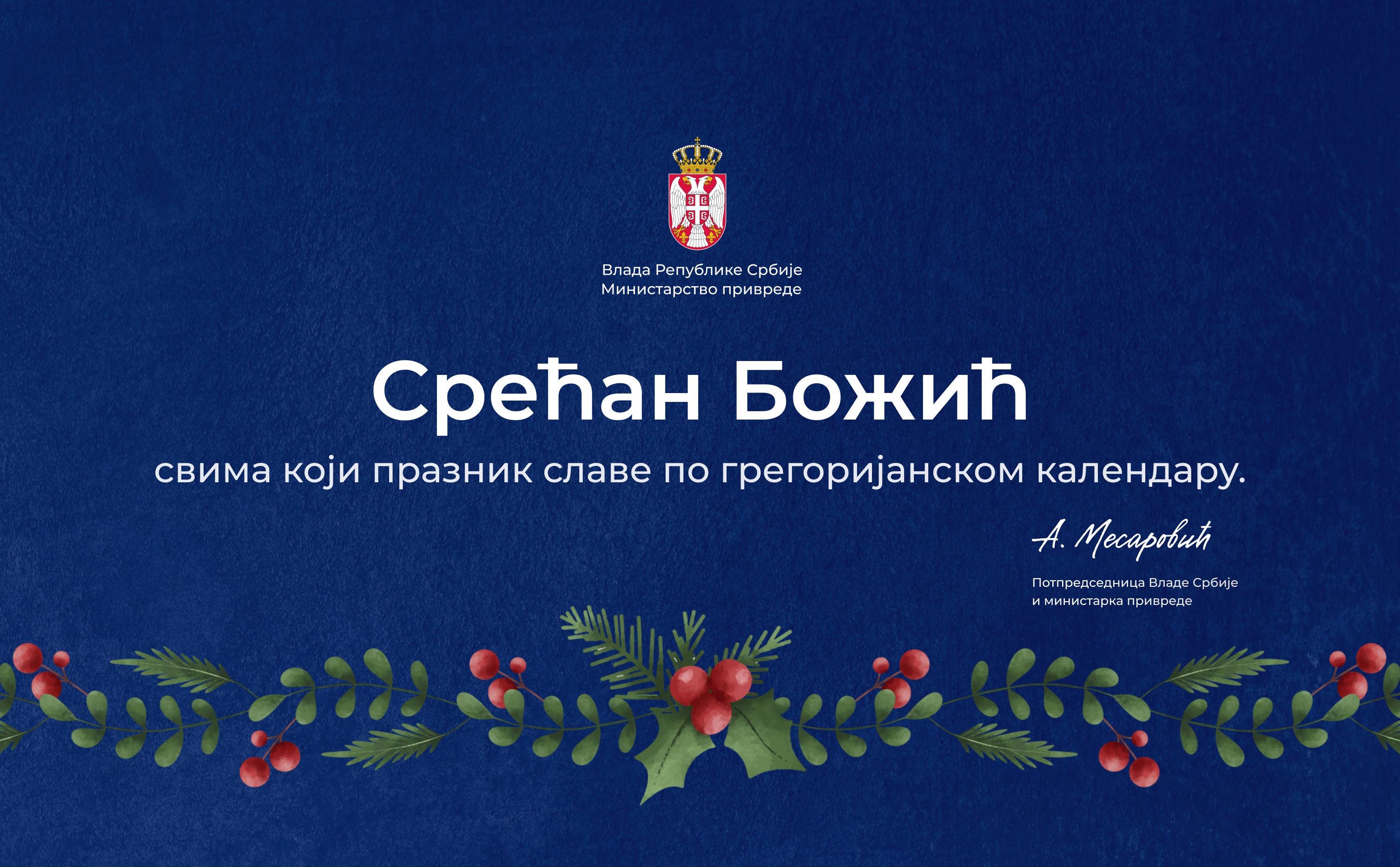 Честитка министарке привреде Адријане Месаровић поводом Божића