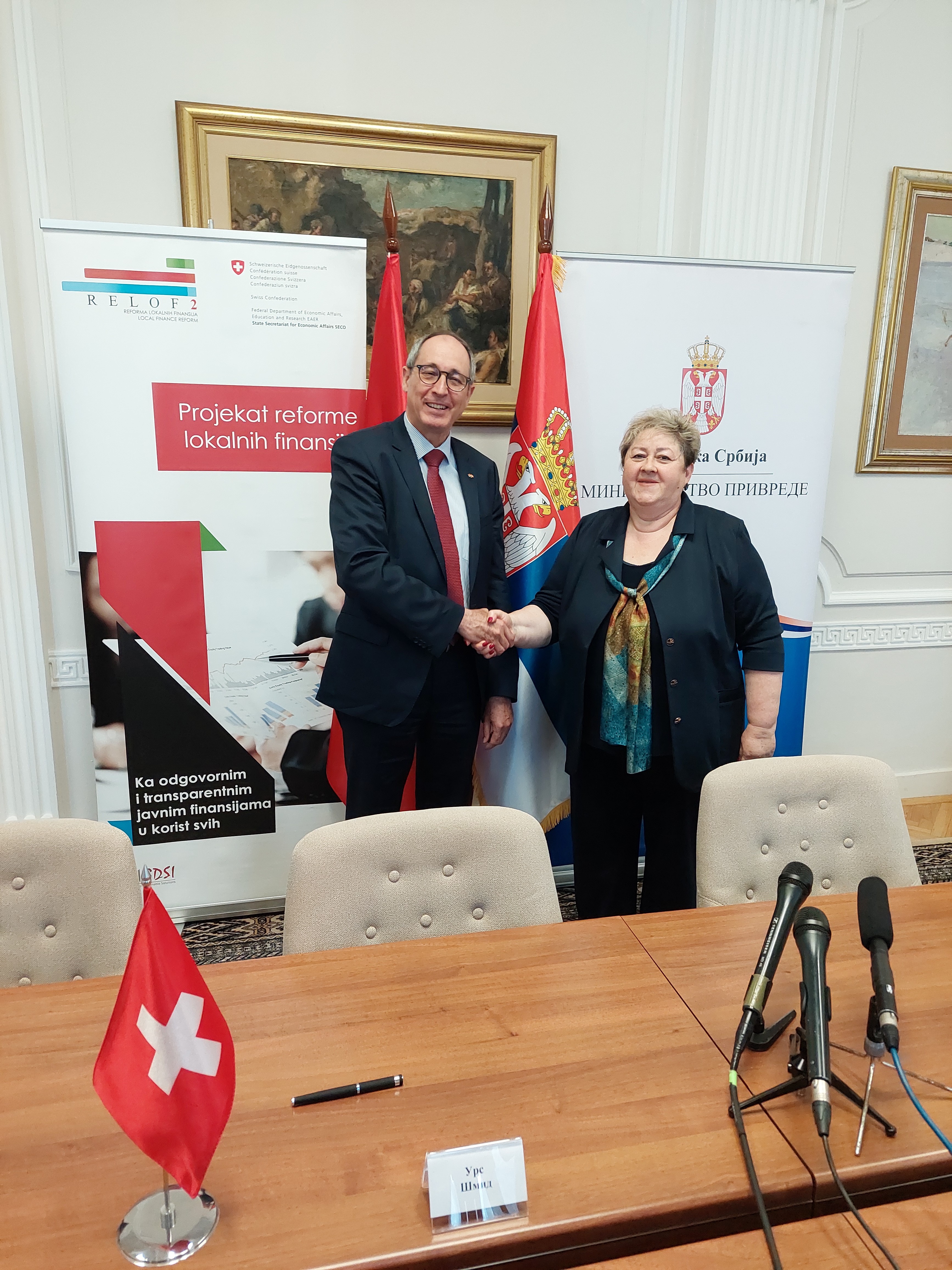 Надзор свих јавних предузећа у Републици Србији ће се од 1. јануара 2023. године спроводити путем софтвера развијеног на иницијативу Министарства привреде у оквиру Пројекта "Реформа локалних јавних финансија II" (РЕЛОФ 2) који подржава Влада Швајцарске. Уговор о донацији Информационе платформе потписали су Анђелка Атанасковић, министарка привреде и Урс Шмид, амбасадор Швајцарске Конфедерације у Србији.