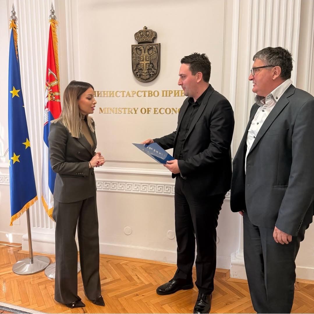 Potpredsednica Vlade Srbije i ministarka privrede Adrijana Mesarović porodičnoj kompaniji ,,VOBI STEF” iz Sevojna uručila je rešenje o dodeli bespovratnih sredstva u okviru Programa za podizanje kapaciteta za internacionalizaciju poslovanja.