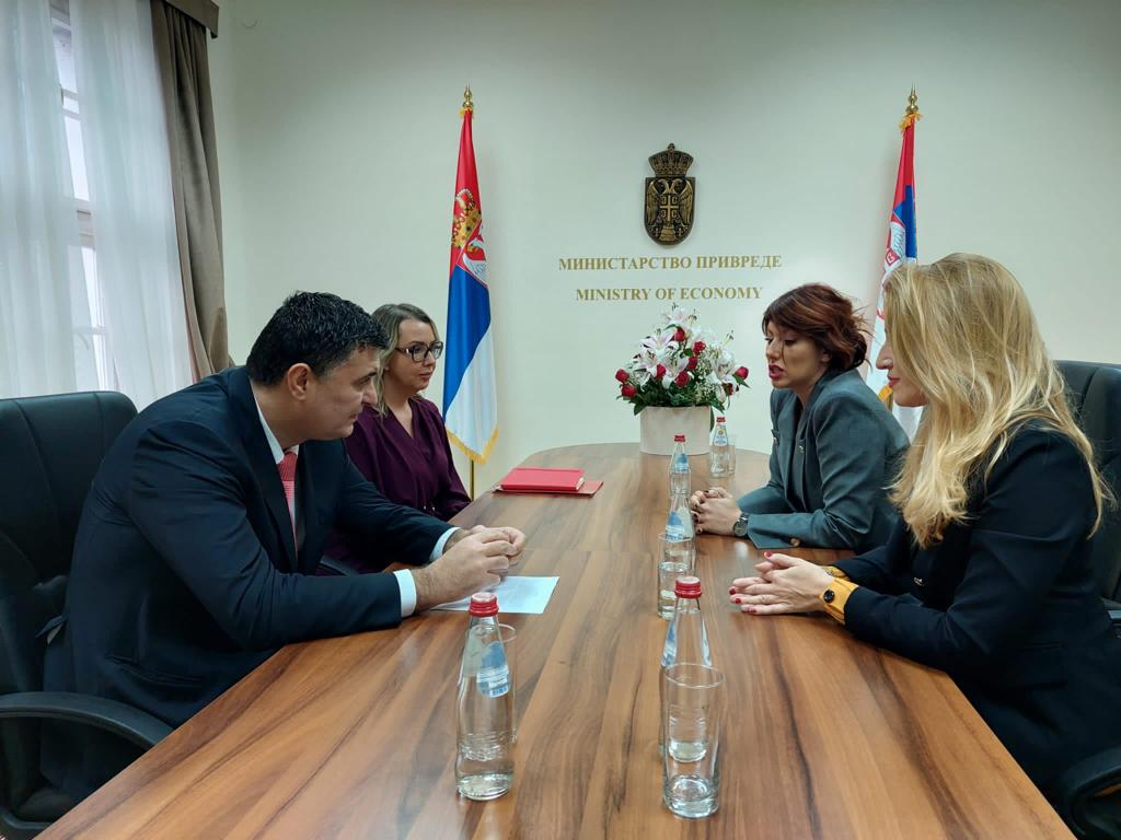 Ministar privrede Rade Basta ugostio je uspešnu srpsku privrednicu iz Loznice Olgicu Samoilović, vlasnicu kompanije Hedera Vita, koja je dobitnica međunarodne nagrade za poslovna dostignuća u Madridu.