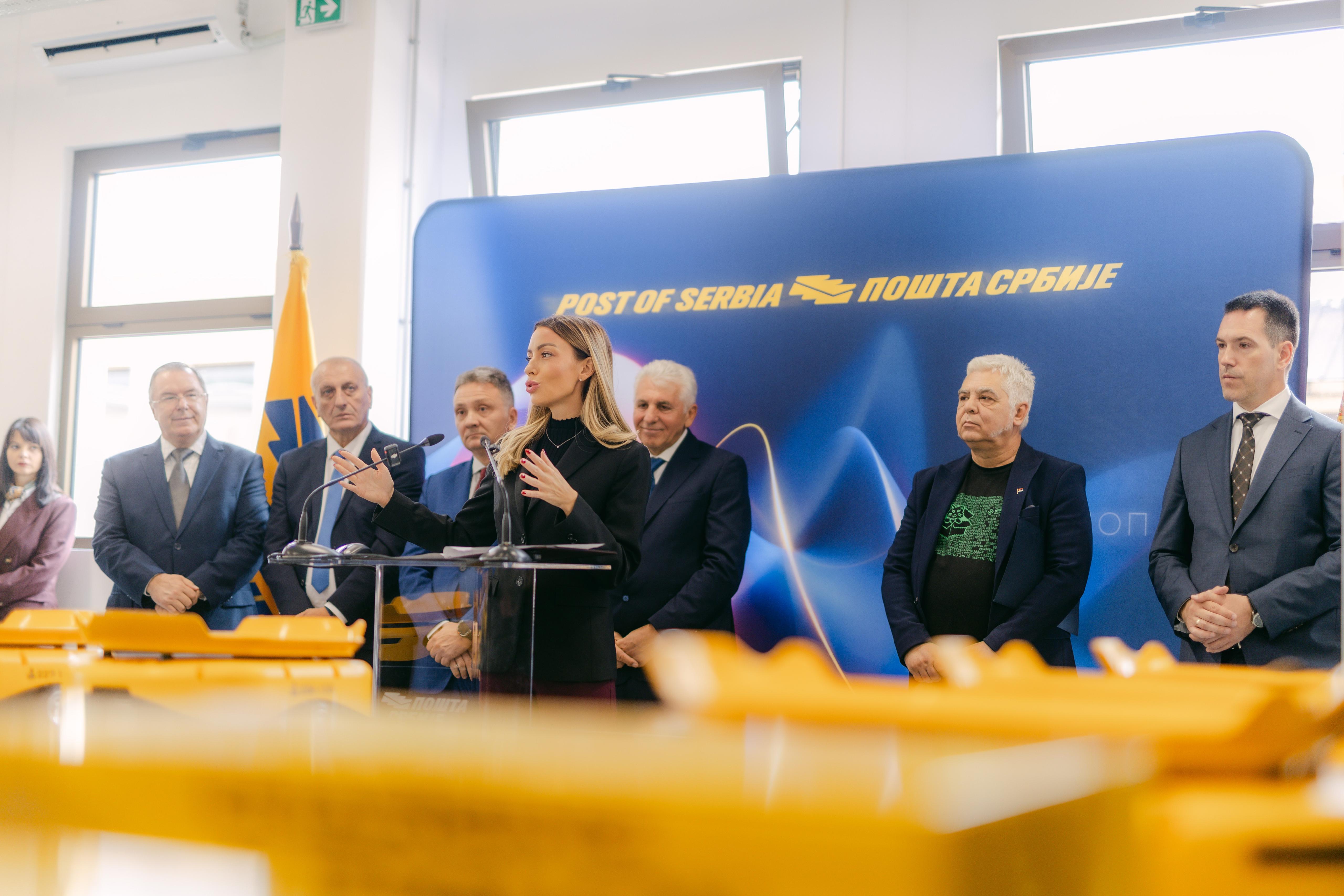 Potpredsednica Vlade Srbije i ministarka privrede, Adrijana Mesarović, otvorila je danas u Kraljevu novi, savremeni poštansko-logistički centar Javnog preduzeća „Pošta Srbije“, u okviru kojeg je pušten u rad robotizovani sistem sa 42 robota.
