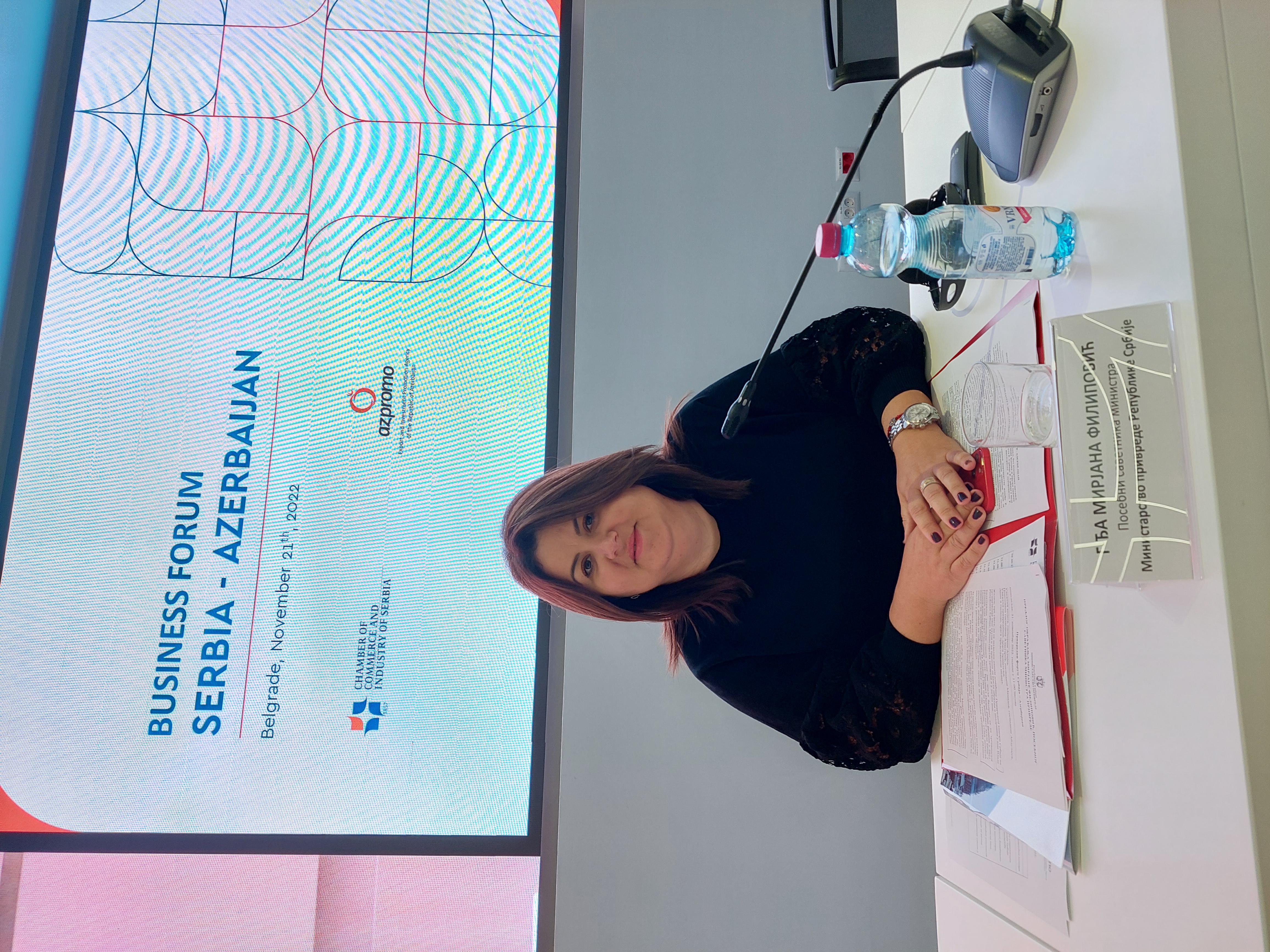 Na poslovnom forumu Srbija-Azerbejdžan, koji je održan danas u Privrednoj komori Srbije, prisutnima se obratila posebna savetnica ministra privrede Mirjana Filipović.